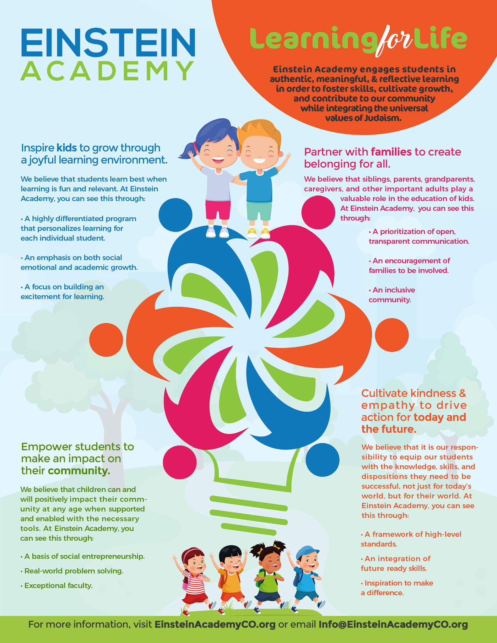 . Thank you so much to all of our supporters -- families teachers board members donors and general advocates -- for making the last few years at Einstein Academy so special. Little Einsteins Academy LLC. Little Einsteins Academy LLC can be contacted at 303 936-4865.